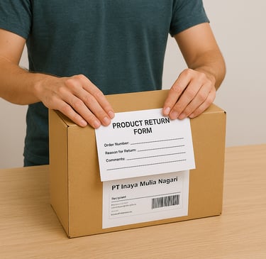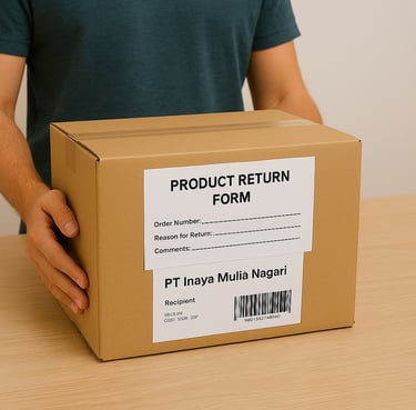 Kami di PT Inaya Mulia Nagari percaya bahwa pengalaman berbelanja bukan hanya soal produk yang Anda terima, tapi juga tentang rasa aman, nyaman, dan percaya sepanjang prosesnya. Maka dari itu, kami menyediakan kebijakan pengembalian barang yang transparan, mudah dipahami, dan tentu saja tanpa ribet.